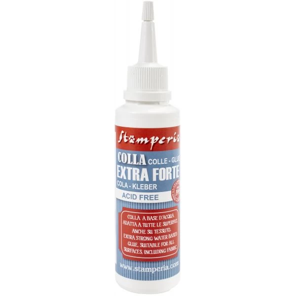 Stamperia Extra Strong Glue 120ml – Extra strong water based glue, suitable for all surfaces including fabric. This package contains 120m of glue. Acid free. Imported.