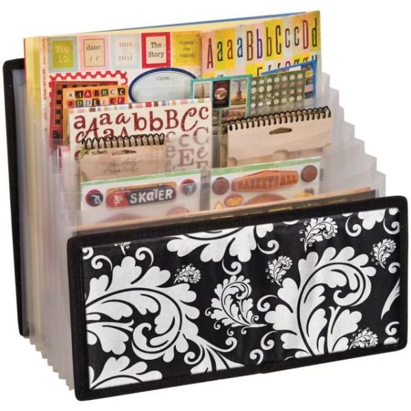 Storage Studios Projections Expandable Sticker Stadium – Lose the mess and keep the memories with Cropper Hopper Projections! This sticker stadium features eight tabbed dividers and it expands to 8 inches deep and can hold thousands of stickers in a variety of shapes and sizes. Plus it has a durable canvas exterior with a fashionable black and white print! This package contains one Sticker Stadium that measures approximately 11-1/4×13-1/4×8 inches expanded. Imported.