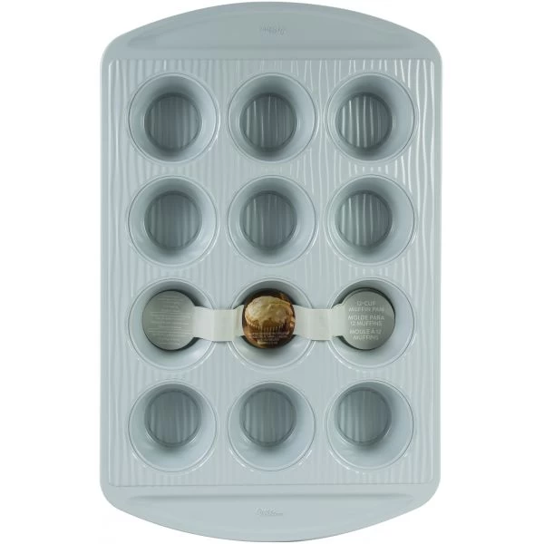 Texturra Performance Non-Stick Muffin Pan – Bake mouth-watering goodies with non-stick bakeware! The unique texture on each pan encourages airflow and structural rigidity while evenly heating its contents. This 17.5×11.5 inch package contains one muffin pan with 12 muffin cups. Imported.