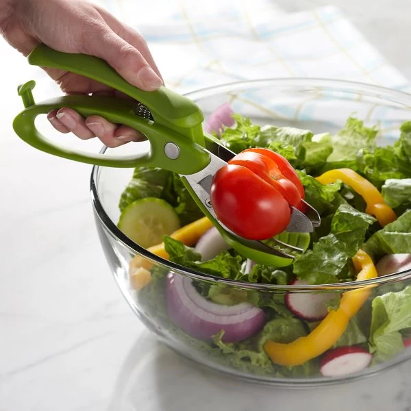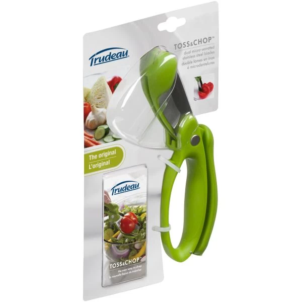 Toss & Chop – Now eating healthier is easier! Toss & Chop with dual micro-serrated stainless steel blades will instantly chop your vegetables, directly over your salad bowl, plate or pan. Blades never need sharpening. It also features a safety lock for secure and compact storage. This package contains one Toss & Chop tool. Imported.