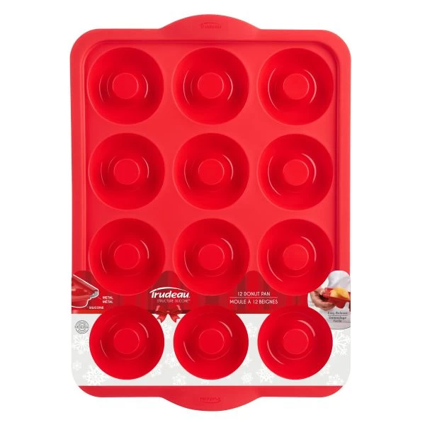 Trudeau Silicone Donut Pan – Integrated steel structure for secure handling. No more drooping. Silicone offers non-stick properties and flexibility for easy release. Cooks evenly for perfect results every time. Freezer, microwave and oven safe. Heat resistant up to 428 degree Fahrenheit. Dishwasher safe. This package contains one silicone donut pan. Imported.
