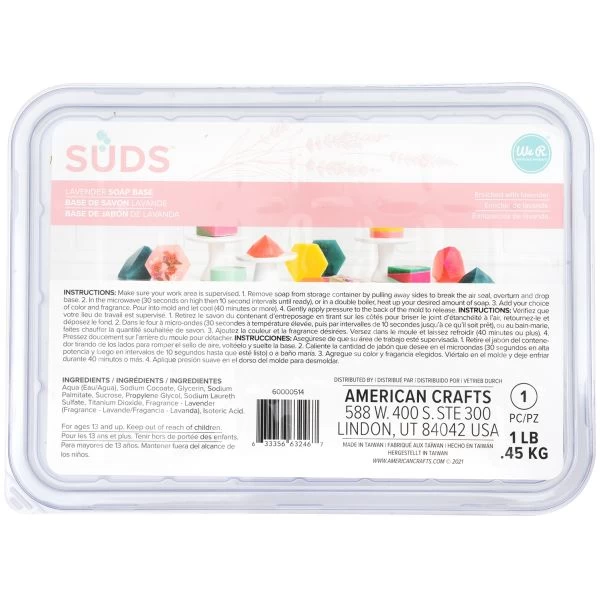 We R Memory Keepers Suds Soap Base – Lather, rinse, and repeat with the SUDS Soap Maker by We R Memory Keepers! This unique machine is hands down the best thing to get you started making customized soaps. Start with this white soap base, then add your own scents, dyes, and more. Pair with other SUDS Soap Maker products for fun projects (sold separately). This package contains 2 lbs of lavender soap base. Imported.
