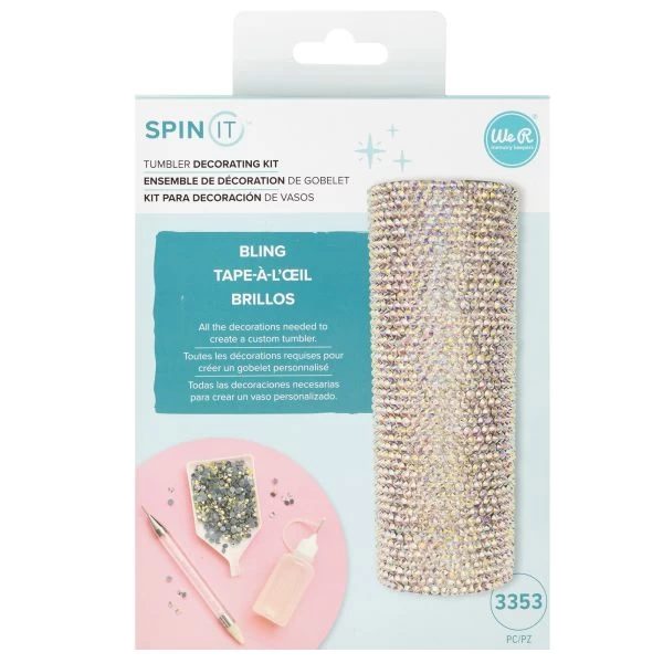 We R Spin It Decorating Kit – All the decorations needed to create a custom tumbler. This package contains fine tip bottle with permanent rhinestone glue, wat tip rhinestone applicator, rhinestone tray, 3,000 ss20 rhinestones, 100 ss12 rhinestones, 100 ss8 rhinestones and 150 ss4 rhinestones. Imported.
