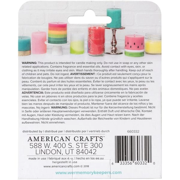 We R Wick Candle Scent 1oz 3/Pkg – Add a unique fragrance to your custom homemade candles! This package contains three 1oz bottles of assorted candle scents. Conforms to ASTM D 4236. Comes in a variety of scents. Each sold separately. Made in USA.