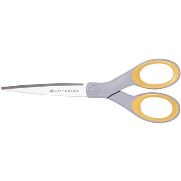 Westcott Titanium Straight Scissors 7″ – ACME-Westcott Titanium Straight Sewing Scissors. Titanium is a high performance metal that is lightweight like aluminum, stronger than steel and highly resistant to rust and corrosion. Acme uses a process that bonds titanium to a stainless steel core to produce a sharper, more durable and longer lasting cutting edge for home and office use. These scissors will stay sharp and smooth-cutting for years making them an exceptional value. This package contains one 7in scissors with contoured soft grip finger holes. Imported.