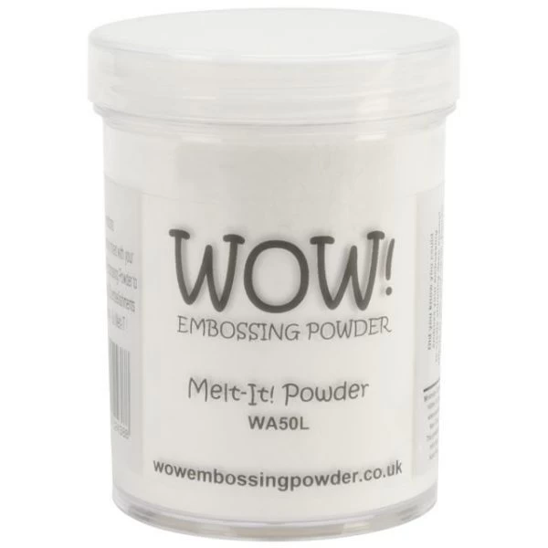 WOW! Embossing Melt-It Powder 160ml – WOW EMBOSSING POWDER-Wow Melt-It! Powder. This works as an extender for your WOW! Embossing Powders. It heats and melts faster than any other embossing enamel or embossing powder. Perfect for creating 3-D objects such as jewelry, pendants, card toppers and more. This package contains one 3-1/4×2-1/2 inch large jar of Melt-It Powder (5.33 ounces). Non-toxic and acid free. Made in USA.