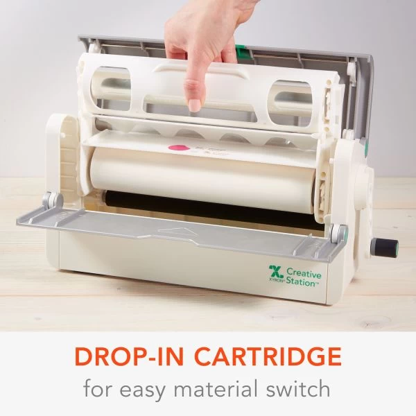 Xyron Adjustable 9″ Creative Station – Xyron Adjustable 9 Inch Creative Station. The new Creative Station was designed to take up less space on a desk with its compact style and folding crank handle. It will also allow for greater flexibility with less material waste by using two cartridge sizes in one machine; it will accept both the 9 inch and 5 inch adhesive, laminate, laminate/magnet and laminate/adhesive cartridges. This 7×13-3/4×6 inch package contains one 9 inch long adjustable Creative Station. Non-toxic. Acid free. Imported.