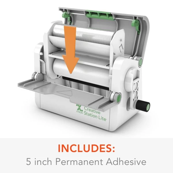Xyron Creative Station Lite 5″ Machine – Xyron Creative Station Lite Machine: White/Silver. This machine is a compact all-in-one tool for adding adhesive, magnet or lamination to your creative projects. It accepts two different sized refill cartridges, minimizing waste and maximizing flexibility for your smaller sized projects. There is no heat, no batteries or electricity required. Drop-in refill cartridges allow you to switch applications quickly and easily (sold separately). This 6×9-1/2×5- 1/2 inch package contains one 5 inch machine and 18 feet of 5 inch permanent adhesive. Imported.
